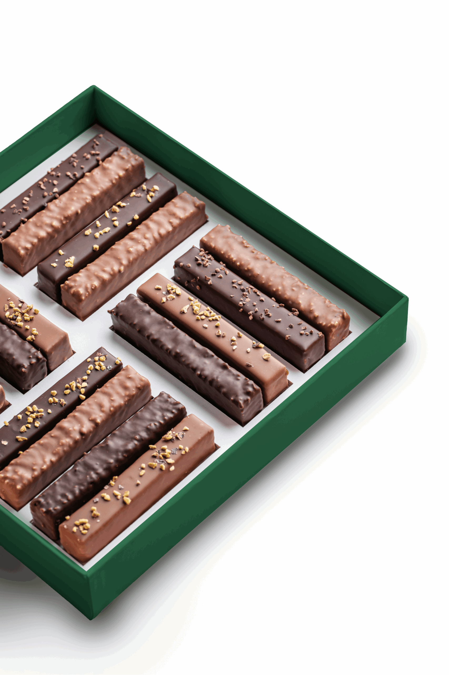 Each branch is the result of a subtle balance between textures and aromatic intensity: the richness of organic Italian nuts, carefully selected for their depth and character, meets the delicate crunch of Swiss biscuit pieces. All delicately coated in Grand Cru cocoa, revealing a perfect harmony between crispness and smoothness.