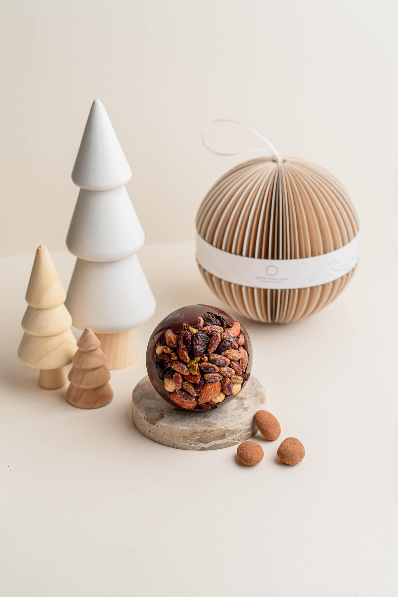 Behind its poetic design lies a 3-in-1 creation: a sustainable holiday delight made with organic Grand Cru chocolate and dried fruits hiding an irresistible surprise, a handcrafted and ingeniously designed packaging that enhances its beauty, and a decoration to hang or illuminate.