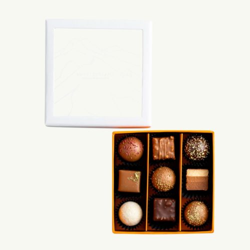 Notre coffret prestige qui réunit les pralinés et caramels Grands Crus de la Maison. Des salines suisses aux vanilleraies de Tahiti, en passant par les noisetiers, amandiers et pistachiers d’Italie, ce coffret est un véritable voyage des sens au coeur de terroirs d’exception, que nos artisans chocolatiers ont élaboré au sein de notre atelier de Genève, en Suisse.